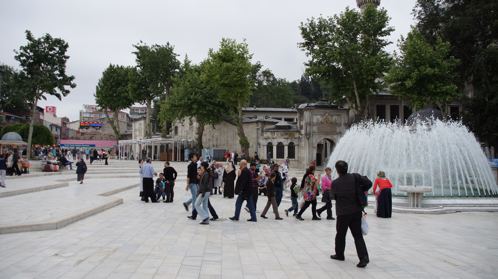 Nach dem Essen gab es noch einen kurzen Spaziergang auf dem Hügel und anschließend sind wir mit der Seilbahn wieder runtergefahren nach Eyüp. Hier haben wir uns noch ein bisschen den Stadtteil mit dem farbenprächtigen Wasserspiel angesehen und sind danach mit Bus und U-Bahn zurück ins Hotel gefahren.