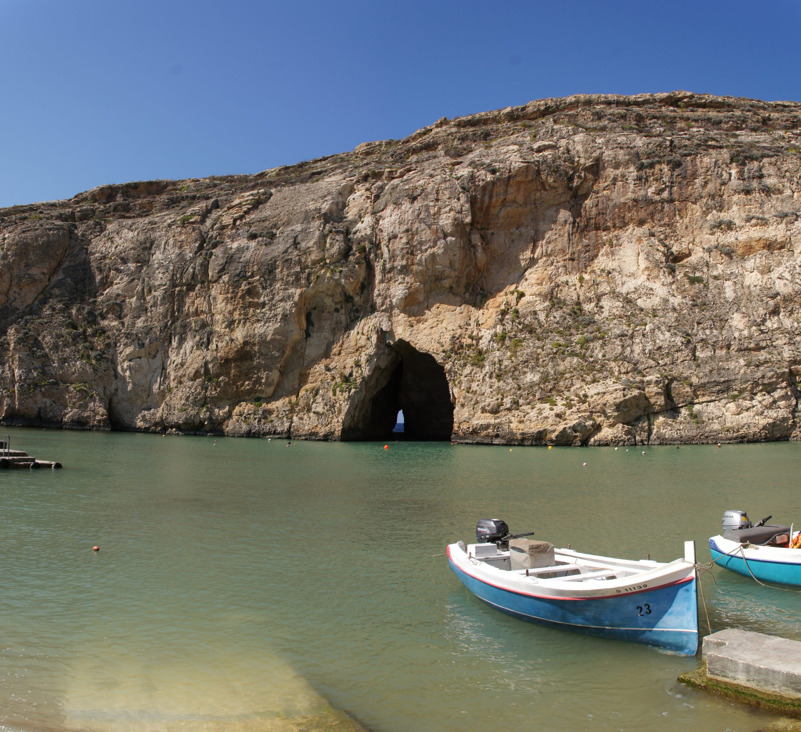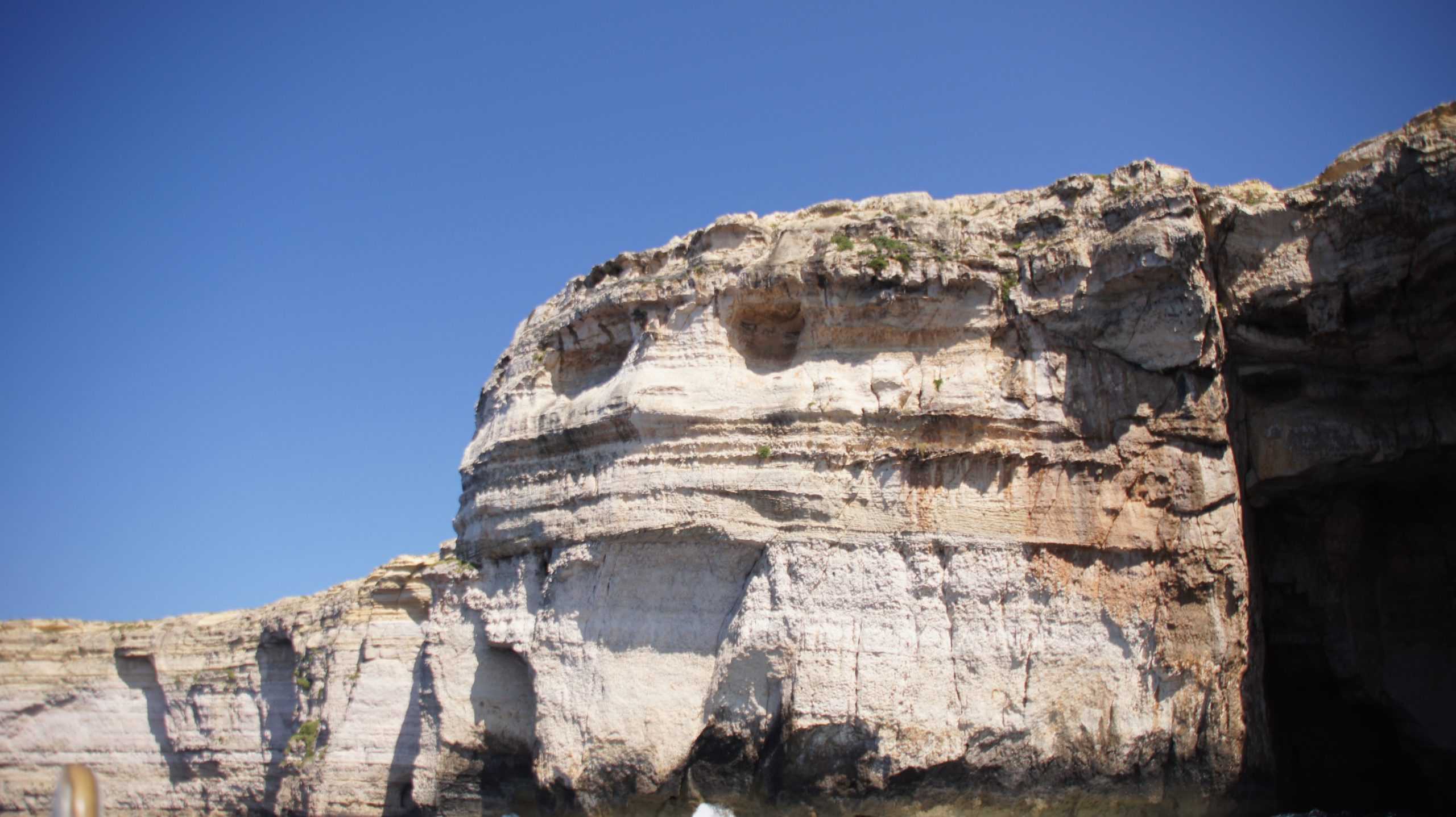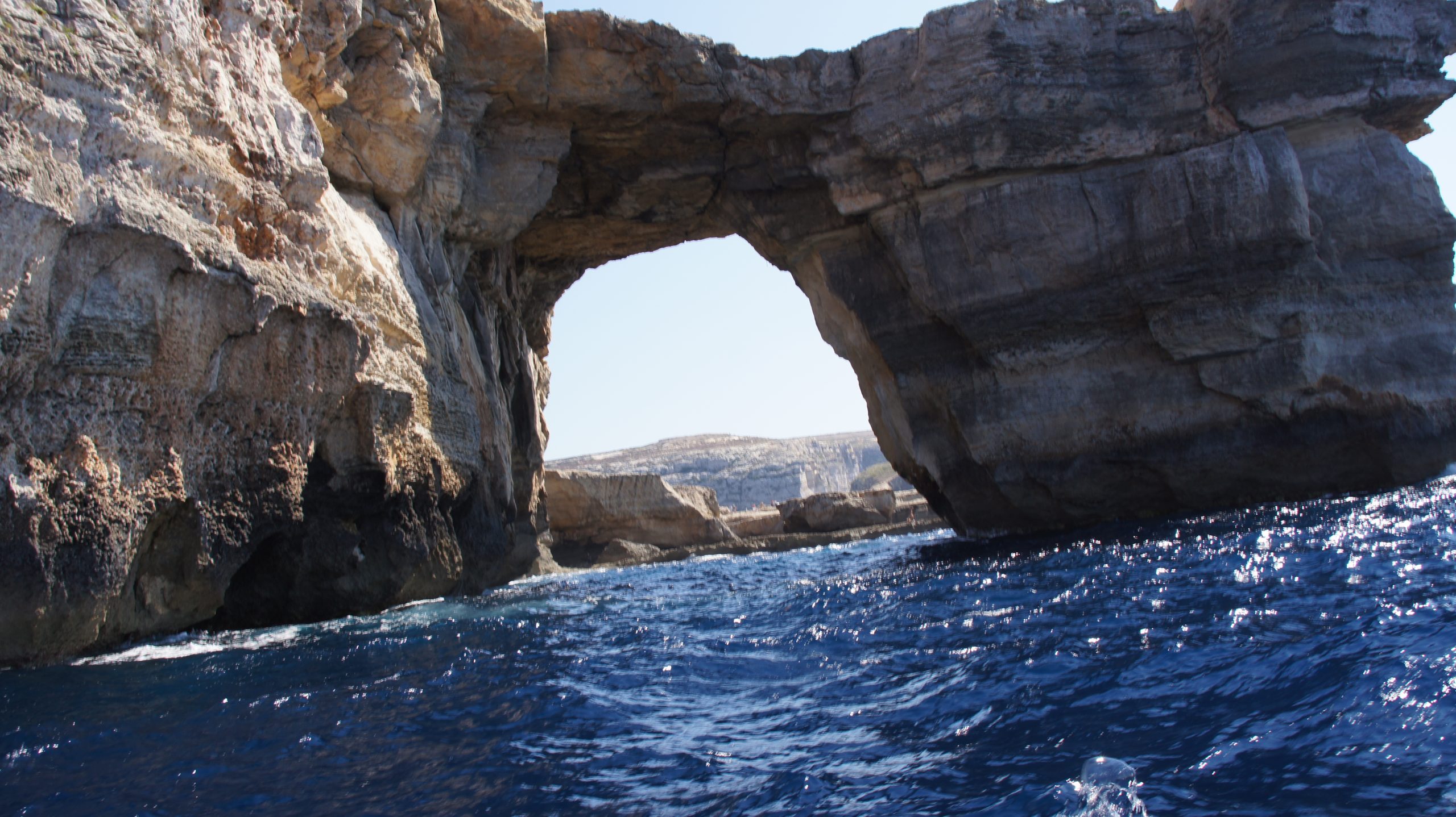 Außerhalb der Bucht, im offenen Meer, erwartet einen erstmal der Blick von außen auf das Azure Window. Allerdings unsere Meinung nach bei weitem nicht so spektakulär.
