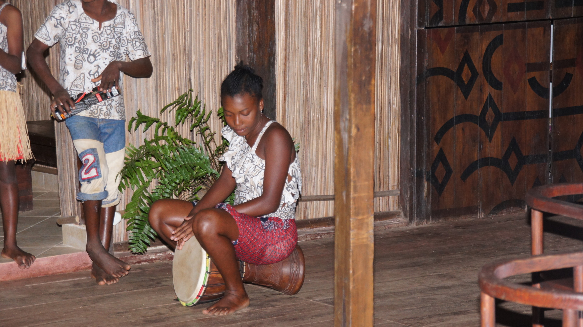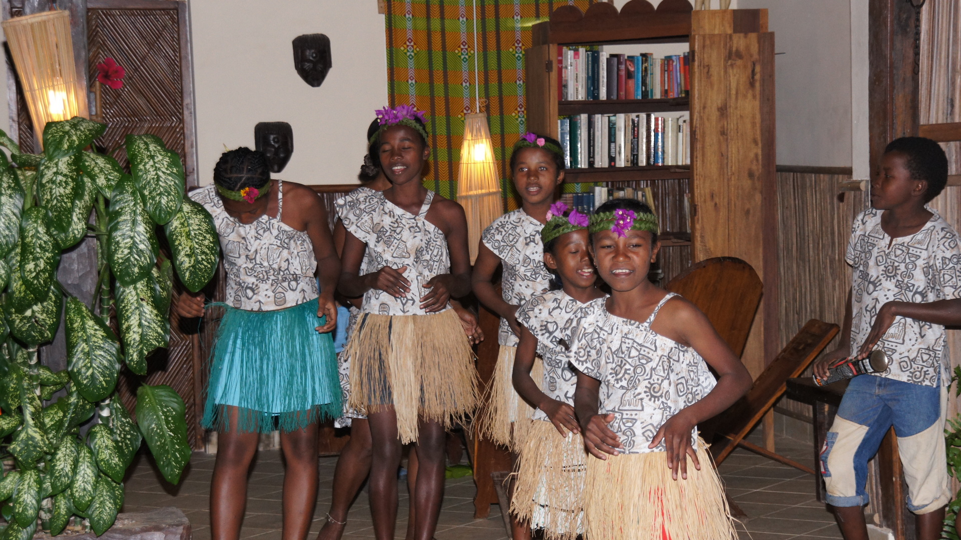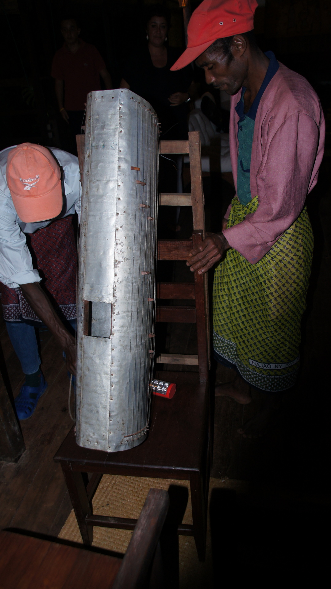 Am nächsten Abend gab es noch eine weitere Darbietung. Hier ging es vornehmlich um Musik. Interessanterweise wurde auf traditionellen Instrumenten, also traditionell sehr weit gefasst, die verschiedensten Stücke gespielt: von der französischen Nationalhymne, über unbekannte – vielleicht einheimische Melodien – bis hin zur lokalen Interpretation von Popsongs. Schaut euch dieses selbstgebaute Instrument an. Es ist eine Zither und nennt sich Valiha. Allerdings hier nicht aus Bambus, sondern aus alten Aluminiumdosen gebaut. Ihr könnt im Internet mal nach dem Musikinstrument suchen und findet eine Reihe an Aufnahmen. Der Klang unterscheidet sich nicht wesentlich von diesem exotischen Instrument.