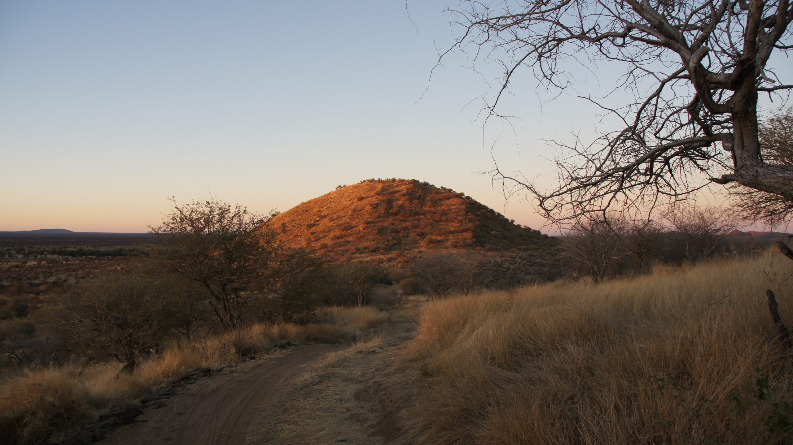 Zum Sundowner Gin-Tonic ging es über das Farmgelände auf einen kleinen Hügel, um von dort im Rundumblick den Tag ausklingen zu lassen.