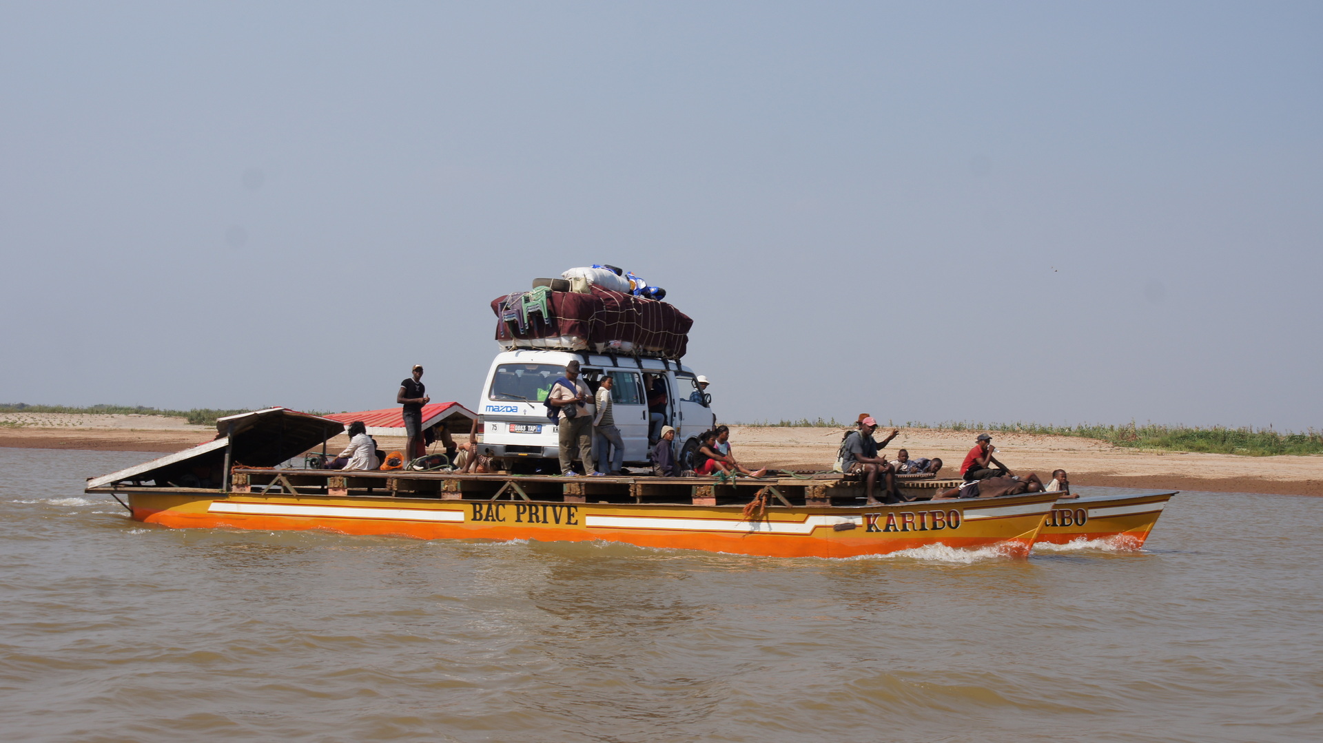 Dass wir hier wieder mal etwas abseits der üblichen Pfade unterwegs waren, fiel sofort auf, als wir die nächste Fähre erreichten. Während es bei den Tsingys ja noch eine staatliche Fähre gab, war es hier am Fluss Tsiribihina wieder der Einfallsreichtum und das Organisationstalent der Bewohner, die eine Überquerung des Flusses möglich machten.