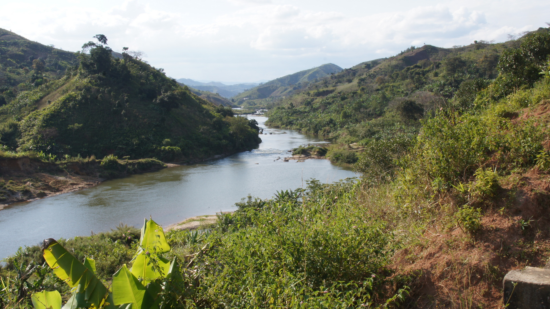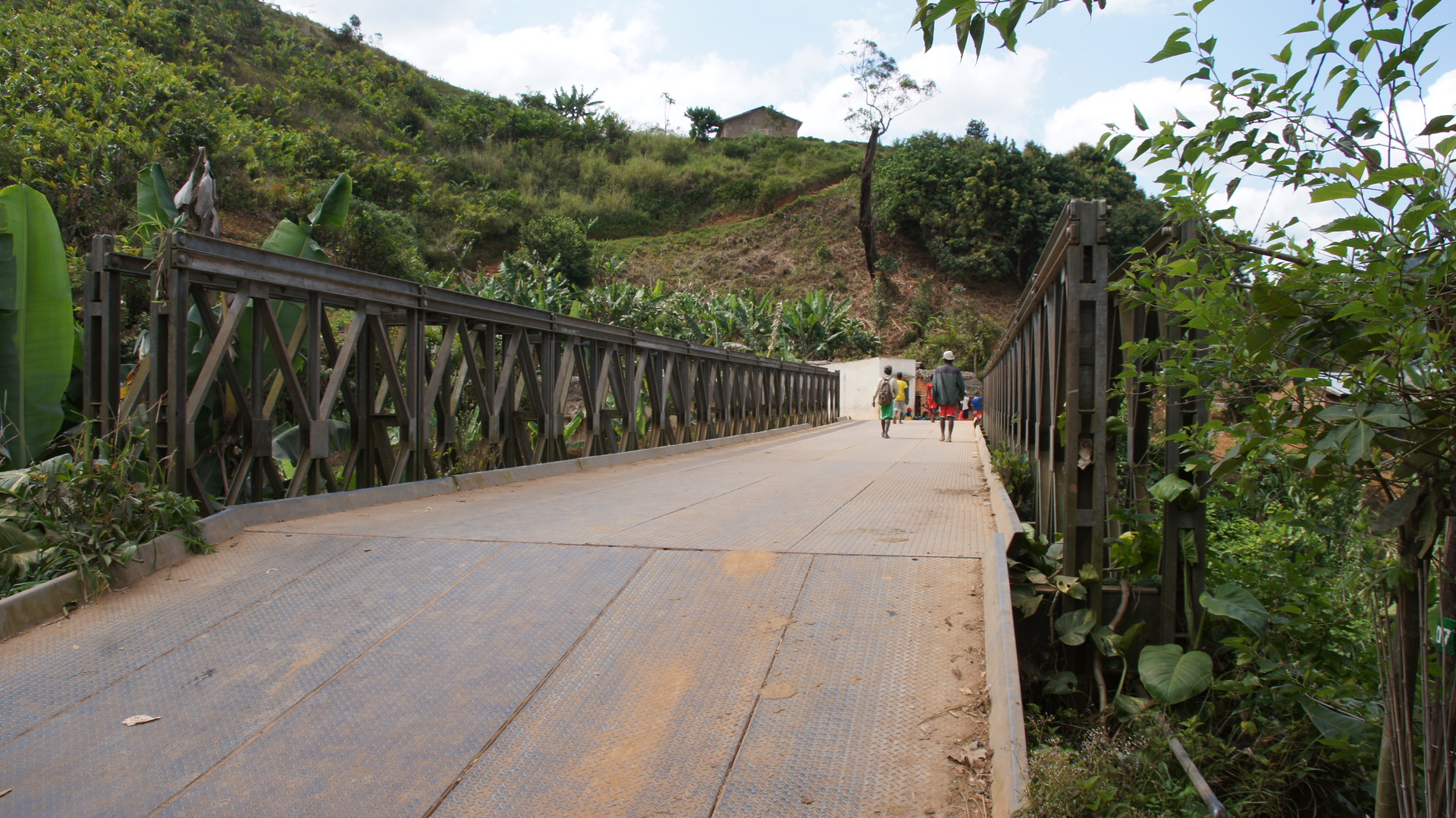 Dieser Ort ist per Nationalstraße erreichbar. Diese ist aber unbefestigt und nur entsprechend langsam befahrbar. Wir hatten uns daher im Vorfeld schon mit unserem Fahrer darauf verständigt, dass wir ihm auf der Straße zu Fuß entgegenkommen. Diese Wanderung begann natürlich am Bahnhof in Tolongoina. Von dort ging es über den einheimischen Markt, der direkt hinter dem Bahnhof beginnt, durch die zentrale Dorfstraße bis zum Dorfende, einer Brücke über den hiesigen Fluss. Und schon ist man wieder mitten in der Natur. Außer weniger Lastwagen sind uns nur Einheimische begegnet, die entweder auf dem Weg zum oder vom Markt waren.