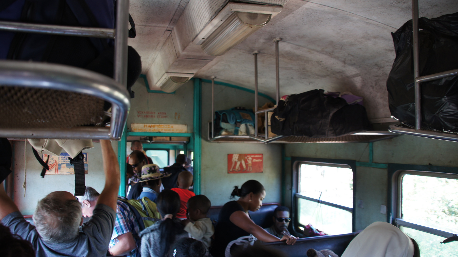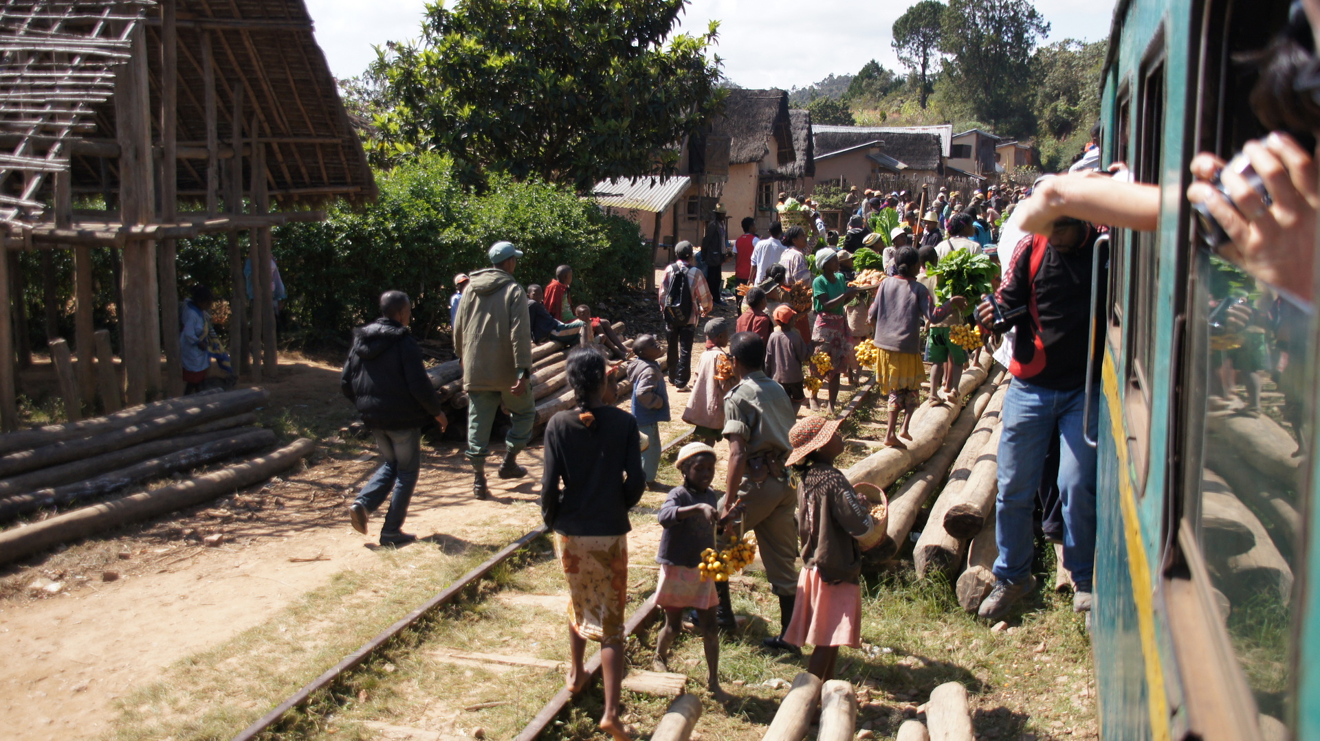 Wenn man sich die Bilder der Bahnfahrt so im Nachhinein ansieht, dann besteht die Aussicht eigentlich nur aus diesen fantastischen Landschaften oder dem überwältigen Rummel. Und an den Bahnhöfen, wo sich zu den Madagassen auch noch jede Menge Touristen aus dem Zug gesellen.
