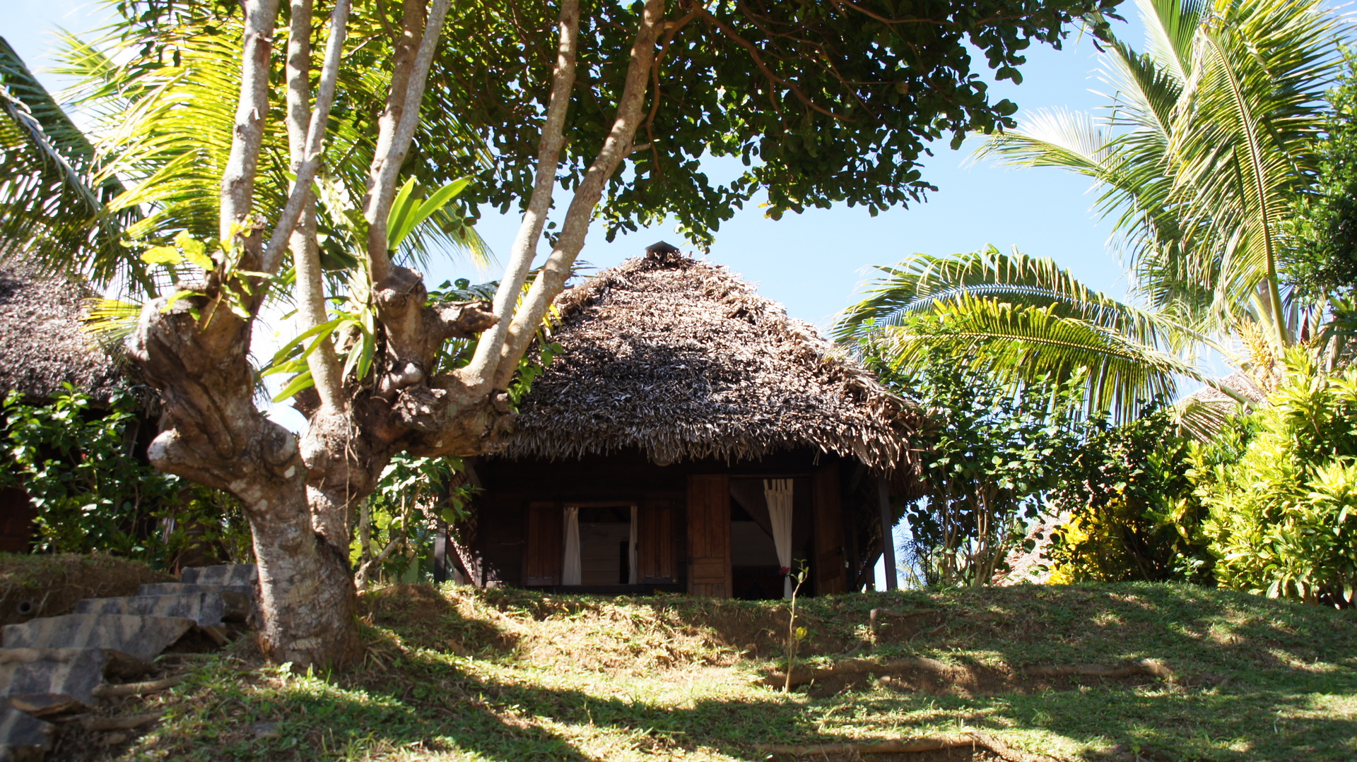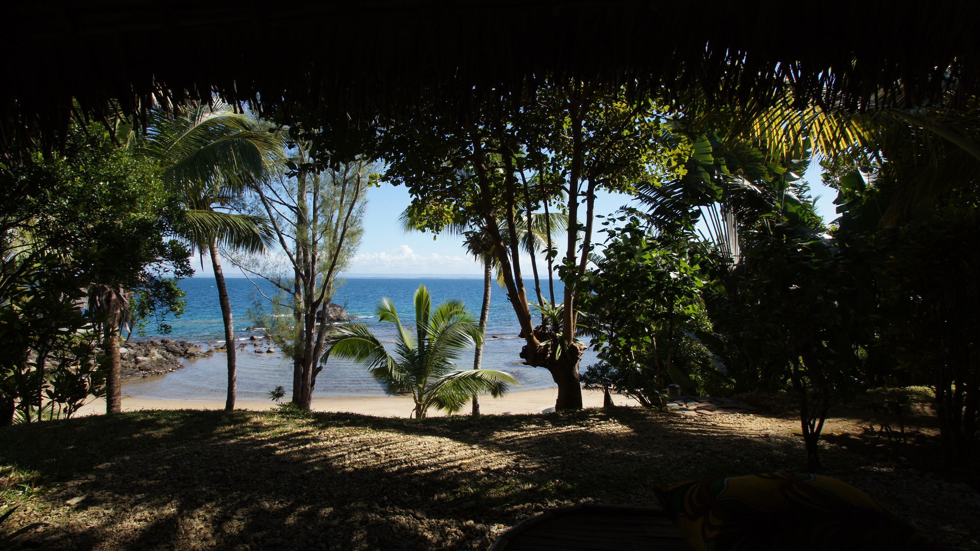 Auf Ile. Sainte Marie wurden wir von einem Minibus abgeholt und in unsere Unterkunft der Masoandro Lodge gebracht. Diese liegt etwas zurückversetzt von der Straße und ist somit völlig ruhig. Ein kleines Restaurant, ein Pool und ein klasse Bungalow mit tadellosem Moskitonetz und Meerblick hinterlassen einen sehr guten Eindruck. Hier fragt man sich wieder, wie eigentlich diese Sternklassifizierungen zustande kommen. Wir fanden das Hotel eher auf dem Niveau von 4***, insbesondere wenn man die Freundlichkeit des Personals, das durchweg gute Essen und die überall sichtbare Sauberkeit und Aufgeräumtheit mit einbezieht. Das fing schon mit der Begrüßung an: