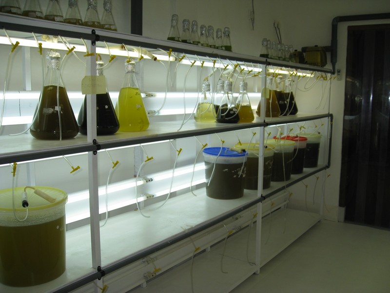 - Sie erhält als Nahrung gezüchtete Algen, und zwar einen ganzen Cocktail, optimal zusammengestellt für das jeweilige Lebensalter