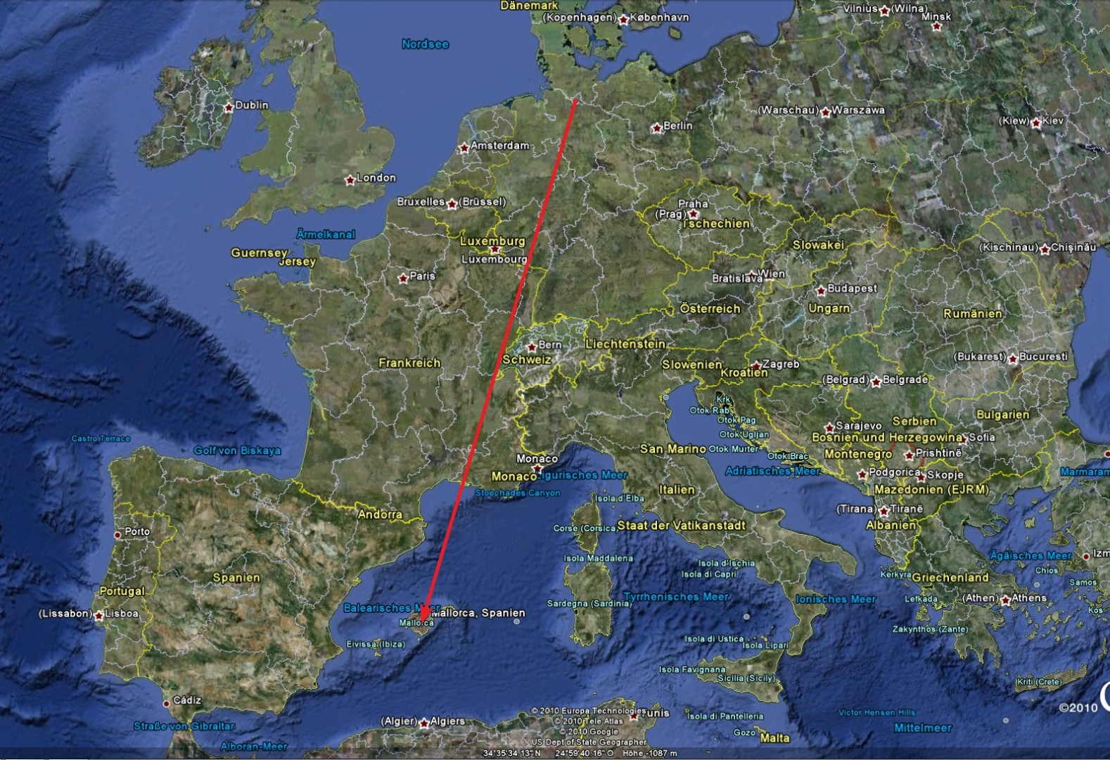 Obwohl wir nur das Wochenende auf Mallorca waren, also nur einen einzigen vollen Tag dort hatten, gab es viele schöne Eindrücke und auch einige Bilder – allerdings diesmal keinen großartigen Reisebericht. Den Freitagabend haben wir mit einem netten Abendessen ausklingen lassen, den Samstag sind wir mit unseren Mietwagen über die Insel gefahren und am Sonntag dann nach einem Abstecher an den Strand (Ballermann) schon wieder zurück zum Flughafen. Hier sprechen einfach mal die Bilder. Als Erstes aber noch das Reiseziel auf Google Earth.