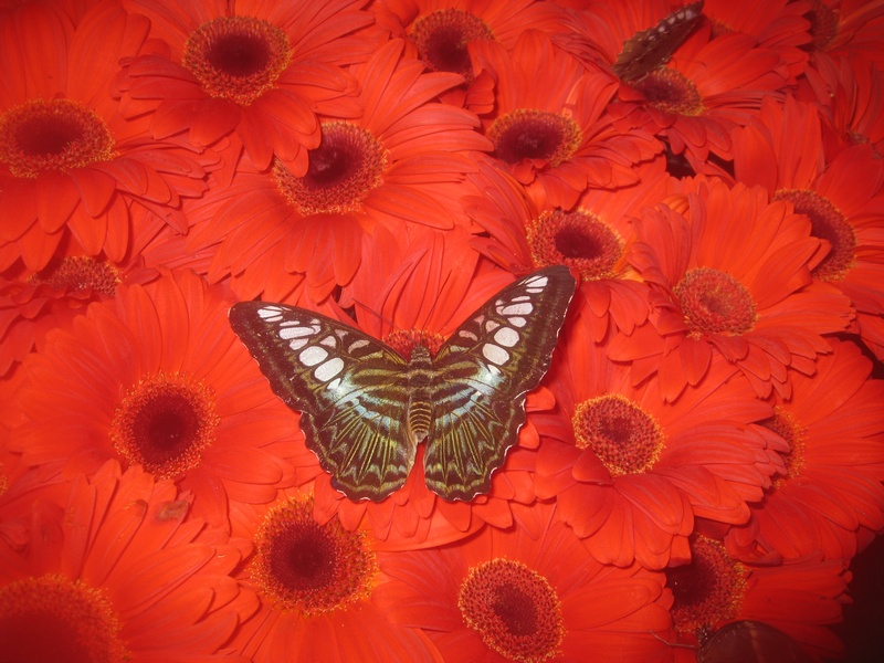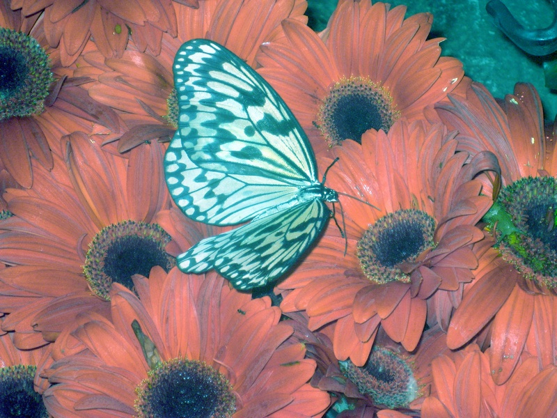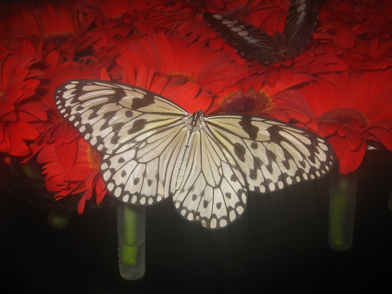 So sind wir auch jetzt wieder mit Singapore Airlines in Frankfurt gestartet. Diesmal haben wir uns auf dem Flughafen in Singapore den Schmetterlingsgarten angesehen. Wenn man aus dem klimatisierten Flughafen in diesen tropischen Bereich wechselt, so ist als Erstes die Brille vollkommen beschlagen. Auch das Objektiv der Kamera hält sich gerade mal so 5 Sekunden nach dem Putzen ohne Beschlag. Nachdem man sich dann auch noch in der Schwüle das Atmen wieder angefangen hat, kann man, wohlgemerkt mitten im Flughafen in Singapore, einen wunderschönen Garten genießen.